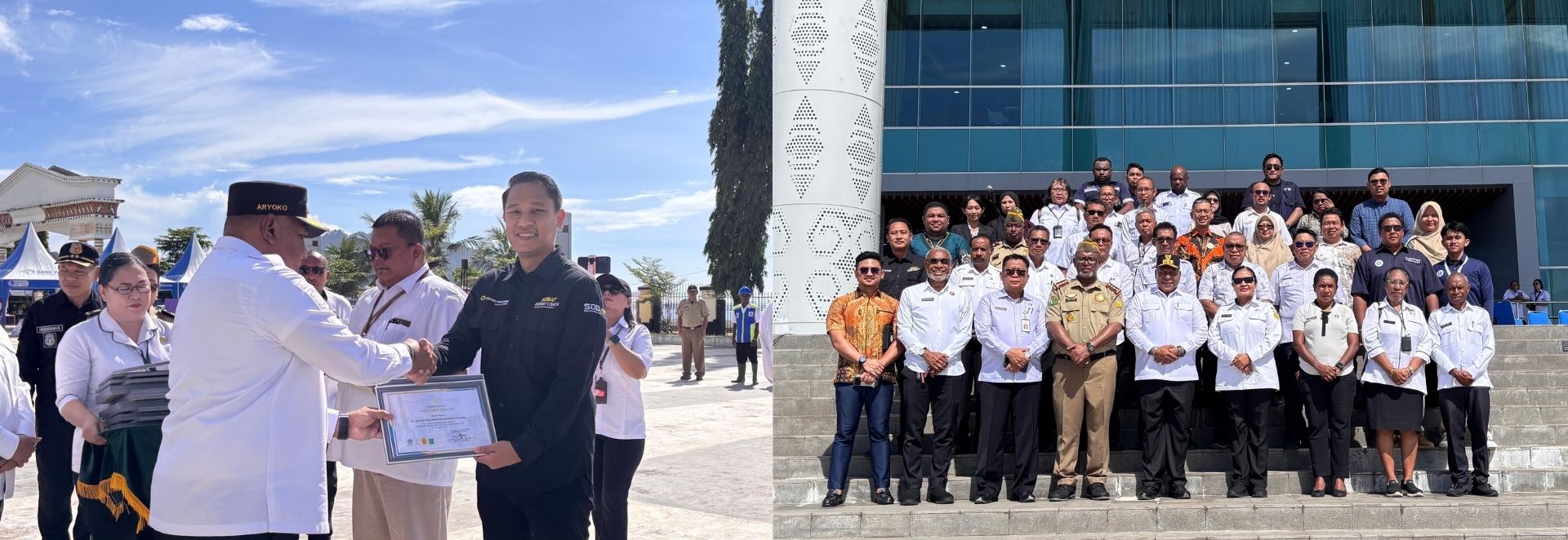 Penerimaan Penghargaan Pembinaan K3 dan P2HIV & AIDS dari Aryoko Alberto Ferdinand Rumaropen, Wakil Gubernur Papua, kepada Branch Operation Head UT Cabang Jayapura, Adhytia Pratomo Saputro.